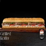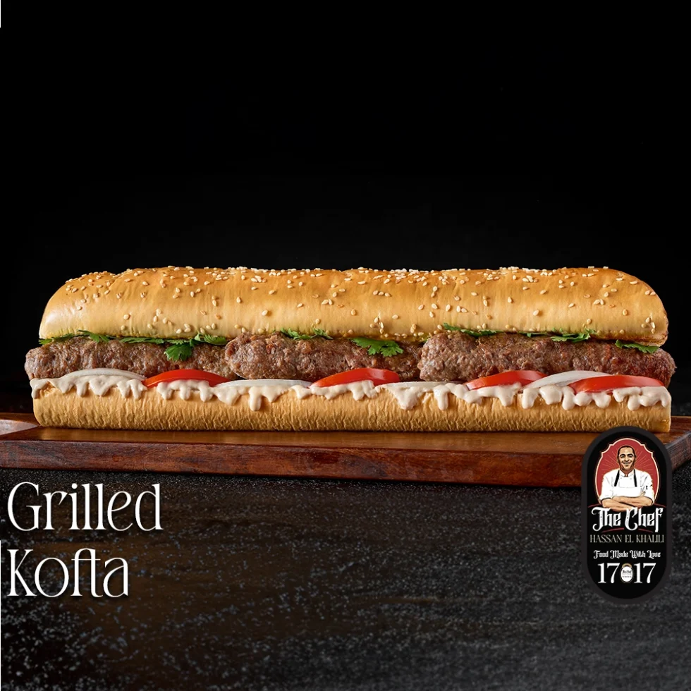 Yellow rice with grilled kofta pieces and grilled vegetables, served with mayonnaise and mexican sauce.