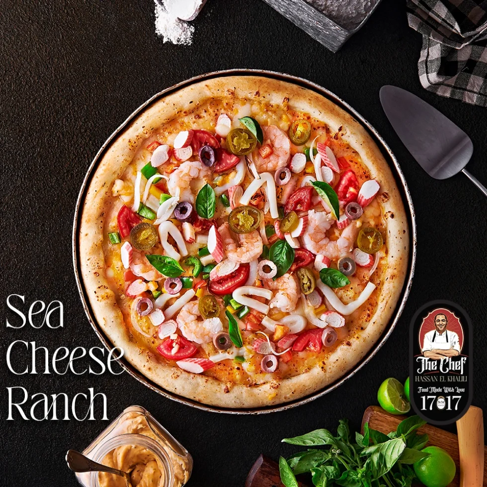Shrimp with crab pieces and tomato sauce, added onions, bell bell pepper, mushroom, cherry tomatoe, jalapeno and mixed cheese.